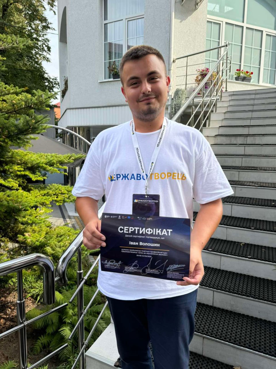 Іван Волошин, cтудент ОР магістр спеціальності “Публічне управління та адміністрування” Освітньої програми “Публічне управління сталим розвитком територій” взяв участь  у національній програмі Державотворець. Програма “Державотворець” – це створення системи особистісного та професійного розвитку молоді в Україні віком від 18 до 35 років, розвиток відповідального лідерства та підвищення рівня громадянської активності молоді. Спікерами