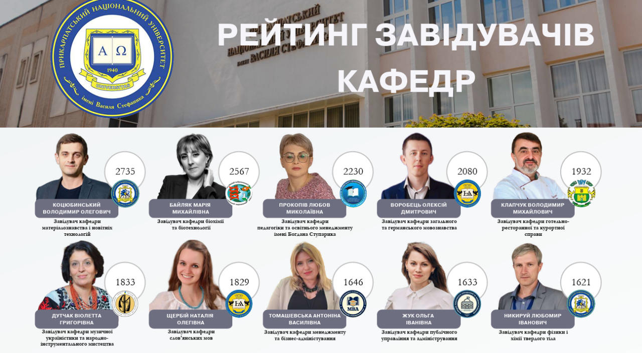 За підсумками загального рейтингу завідувачів кафедр університету Ольга Іванівна Жук ввійшла до ТОП-10!