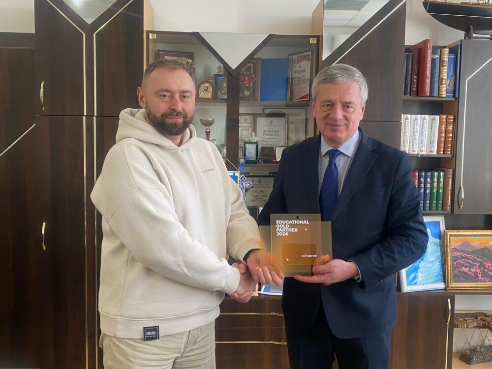 Сьогодні відбулася зустріч в.о. ректора Прикарпатського національного університету Ігоря Цепенди та проректора з науково-педагогічної роботи Руслана Запухляка з директором Центру розробників SoftServe Любомиром Ходаком та керівником Центру розвитку талантів в Івано-Франківській та Закарпатській областях SoftServe Юрієм Безгачнюком. Під час зустрічі наш університет отримав відзнаку «Золотий освітній партнер 2024» від відомої в Україні й за кордоном ІТ-компанії SoftServe.