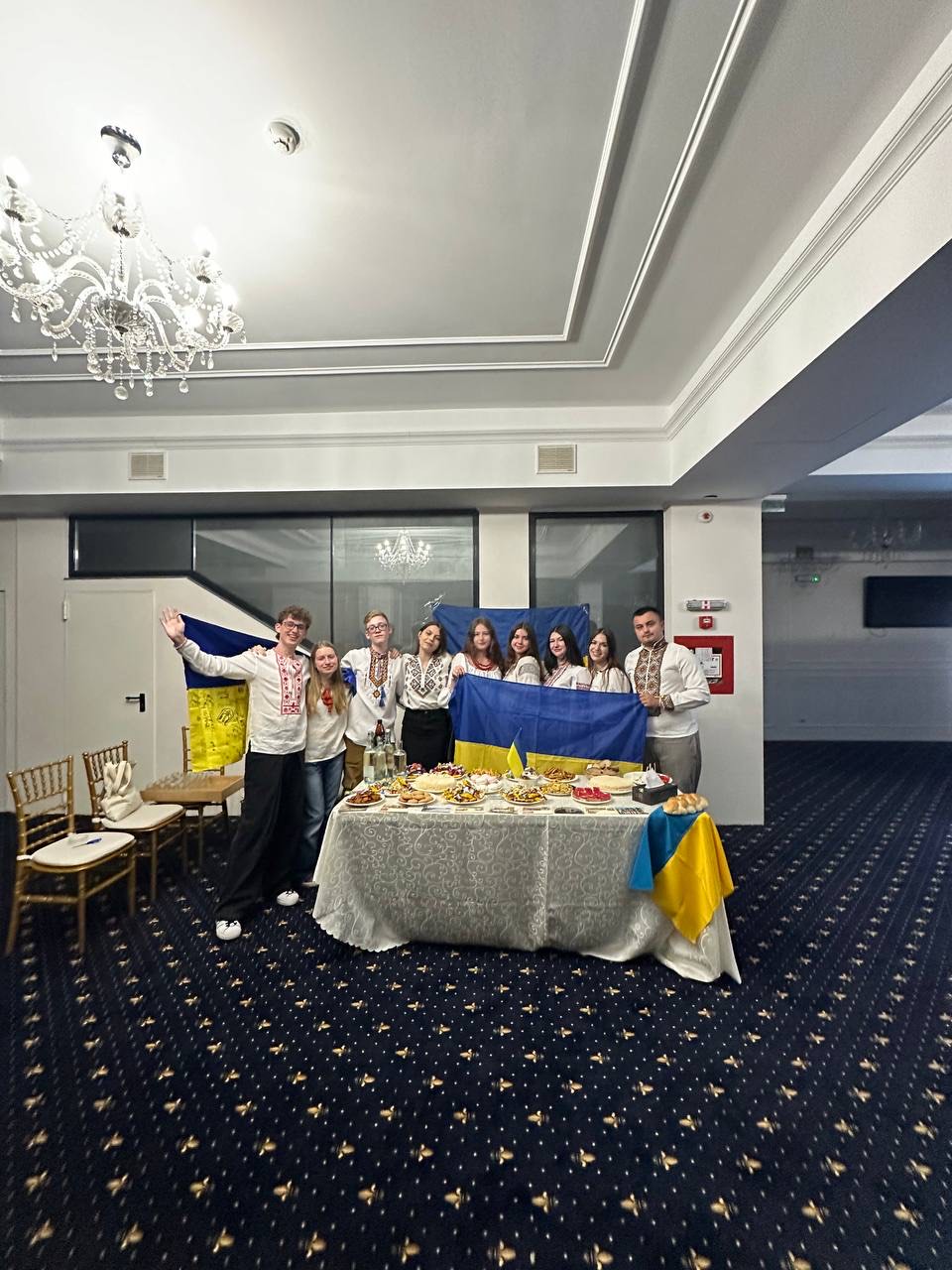 Під час культурного вечора українська делегація представила традиційне українське весілля, народні пісні та символіку — викликавши справжнє захоплення гостей.