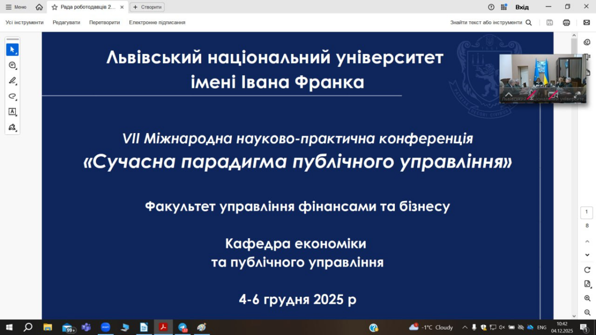 Завідувач кафедри Ольга Жук взяла участь у VII Міжнародній науково-практичній конференції «Сучасна парадигма публічного управління», що відбулася 4 грудня 2025 року у Львівському національному університеті імені Івана Франка.
