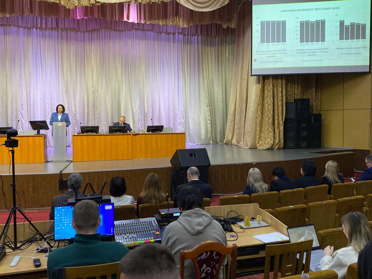 Окрему увагу ректорка приділила питанням вступної кампанії та конкурентоспроможності університету, а також фінансуванню наукової й проєктної діяльності.