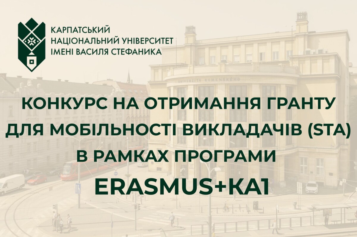 Карпатський національний університет імені Василя Стефаника оголошує конкурс на отримання гранту для мобільності викладачів в рамках програми Erasmus+ KA1 в Університеті Коменського (м. Братислава, Словаччина).