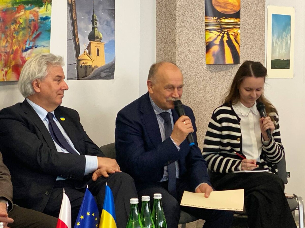 Далі відбулася змістовна розмова за участю представників делегації, у якій поєдналися різні досвіди та бачення. Зокрема, колишній міністр інфраструктури Республіки Польща Цезарій Грабарчик зосередив увагу на реалізації масштабних інфраструктурних проєктів та їхньому значенні для розвитку держави. Водночас редакторка квартального видання «Więź» Богуміла Бердиховська порушила питання культурно-мистецьких ініціатив як важливої складової суспільних трансформацій і міждержавного діалогу.
