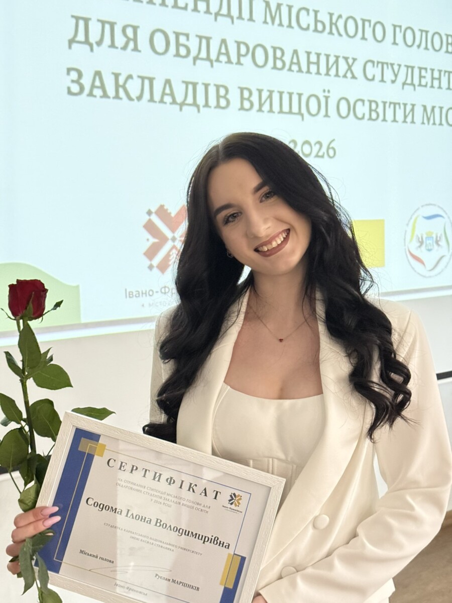 Вітаємо студентку 2 курсу спеціальності «Публічне управління та адміністрування» Ілону Содому з отриманням стипендії міського голови для обдарованих студентів та студента 1 курсу Івана Музичку з отриманням премії Івано-Франківської міської ради!