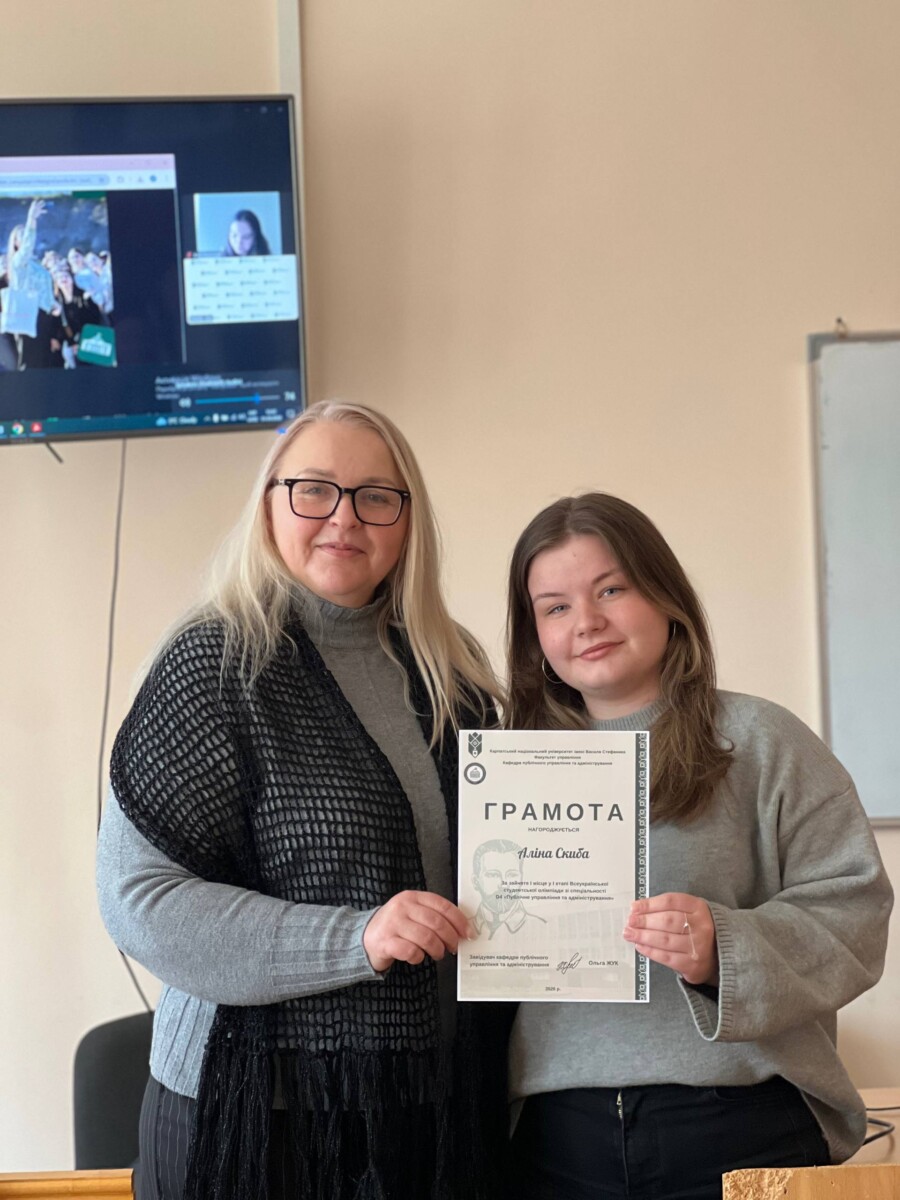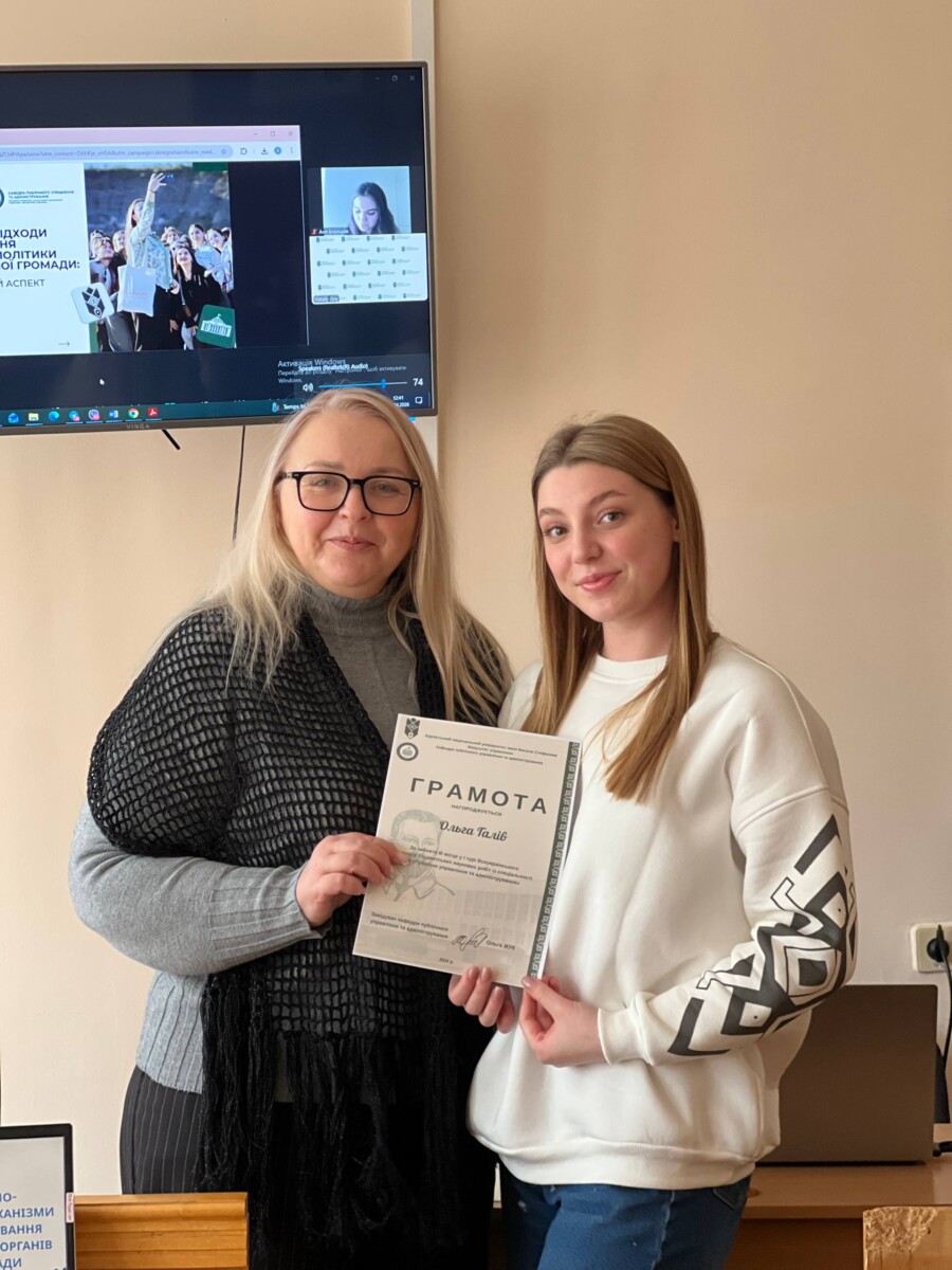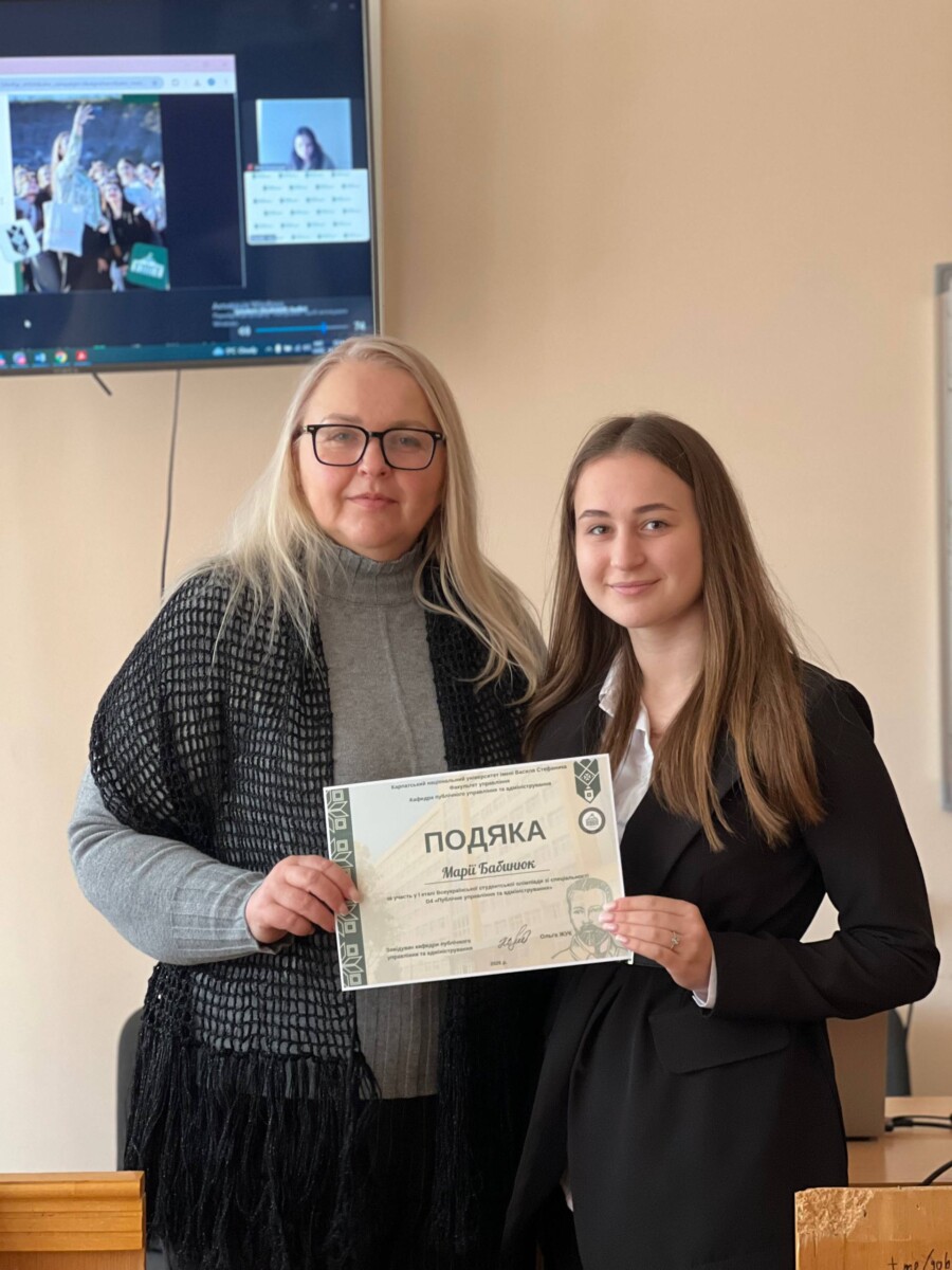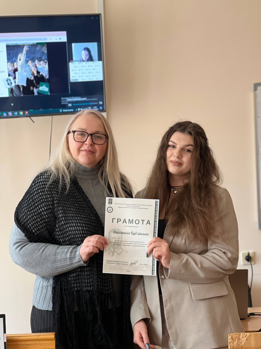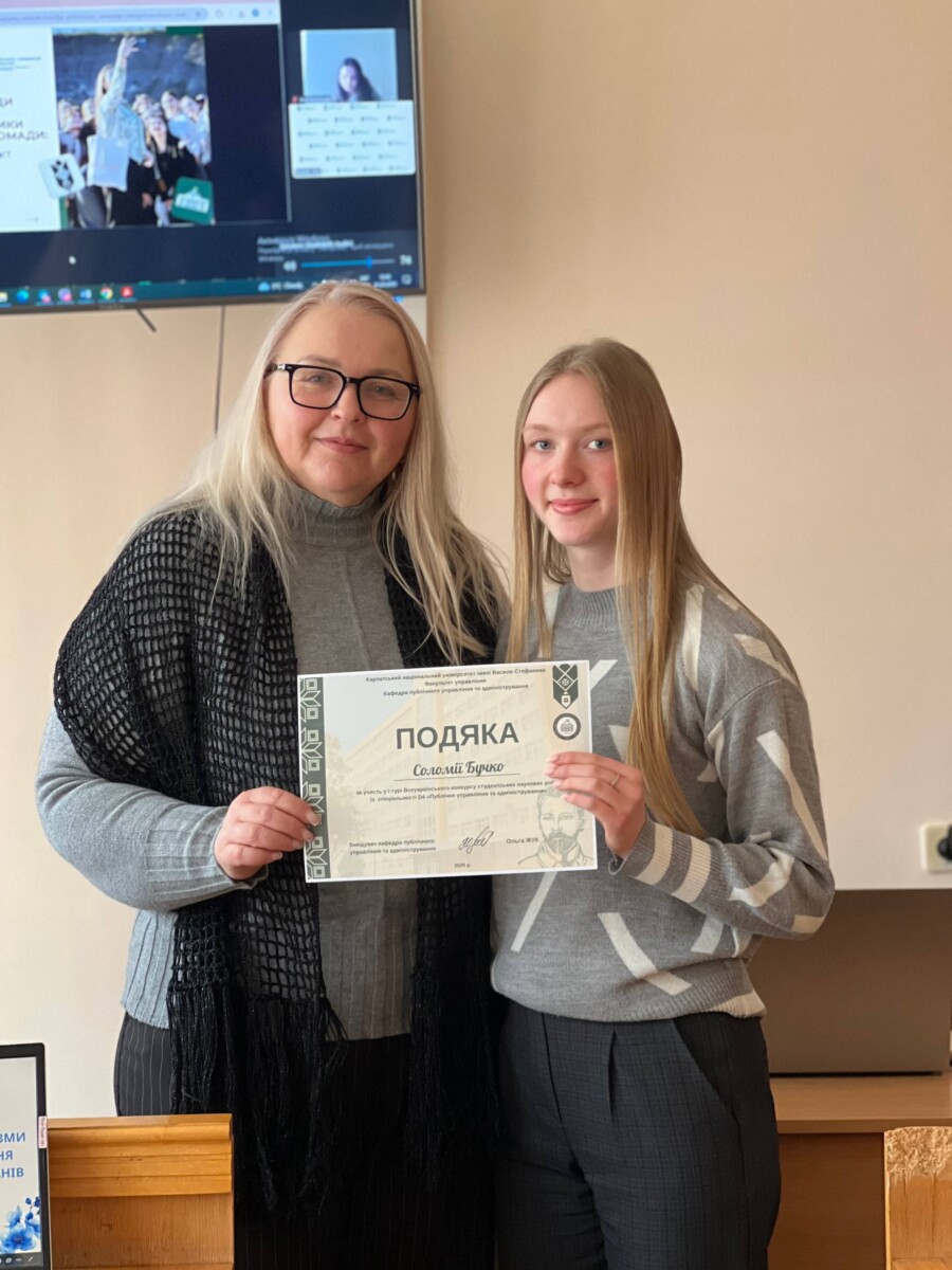На кафедрі публічного управління та адміністрування відбулося урочисте нагородження переможців І етапу Всеукраїнського конкурсу студентських наукових робіт та І етапу Всеукраїнської студентської олімпіади зі спеціальності D4 «Публічне управління та адміністрування».