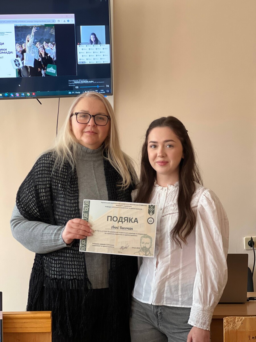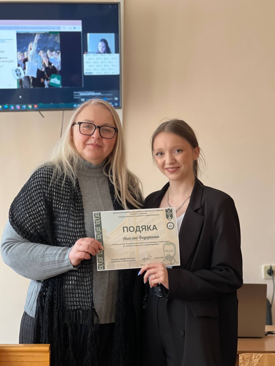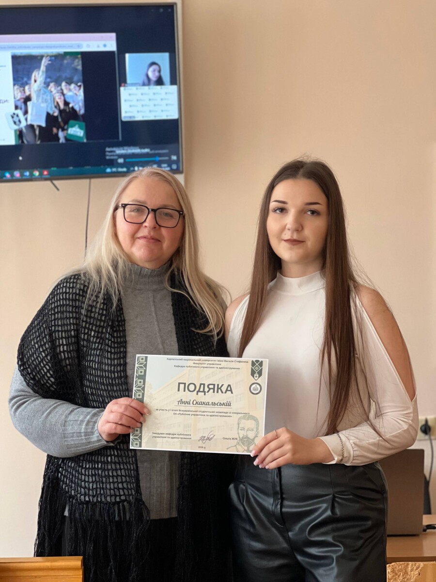 – ІІІ місце – студентка групи ПУА-11 Галів Ольга Мар’янівна з темою: «Використання технологій штучного інтелекту в управлінні розвитком Івано-Франківської міської територіальної громади».