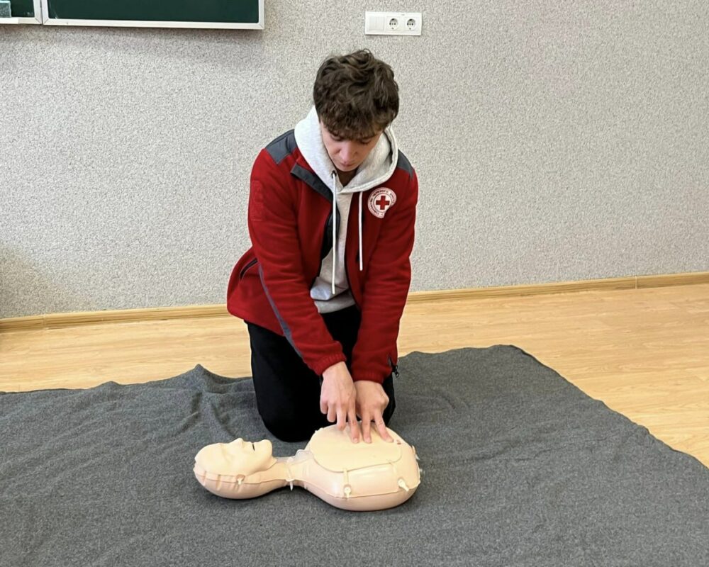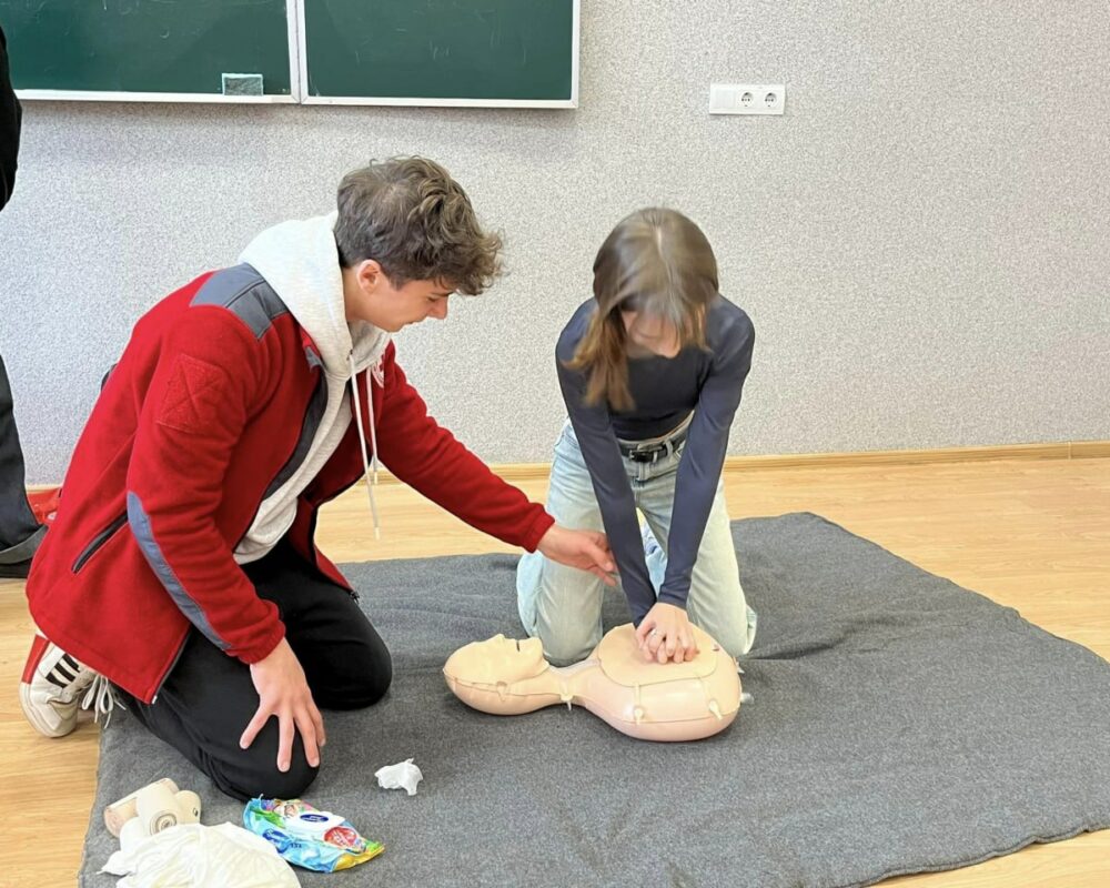 ✅ During the training, students learned how to perform cardiopulmonary resuscitation (CPR) and provide aid in cases of unconsciousness. Each step was clearly explained by experts, and participants were able to practice their actions on mannequins under the supervision of instructors.