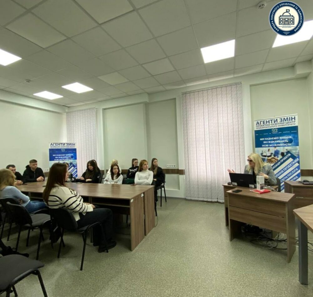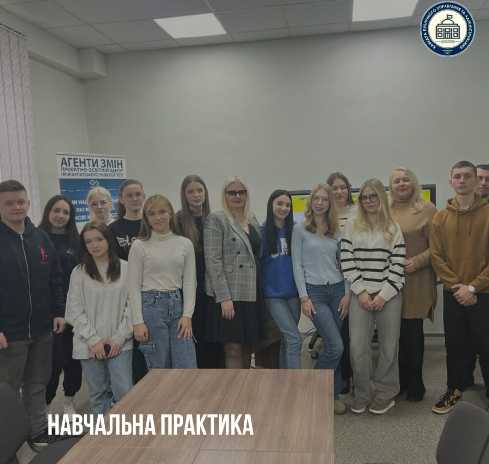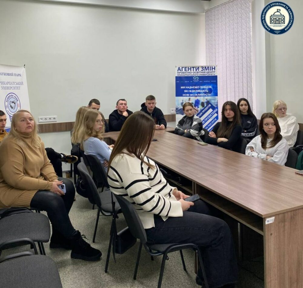On February 3, first-year students of the 281 “Public Administration and Management” specialty began their training practice at the project-educational center “Agents of Change.” Future managers were introduced to the history of the “Agents of Change” initiative, its implemented projects, and agreements signed with territorial communities.